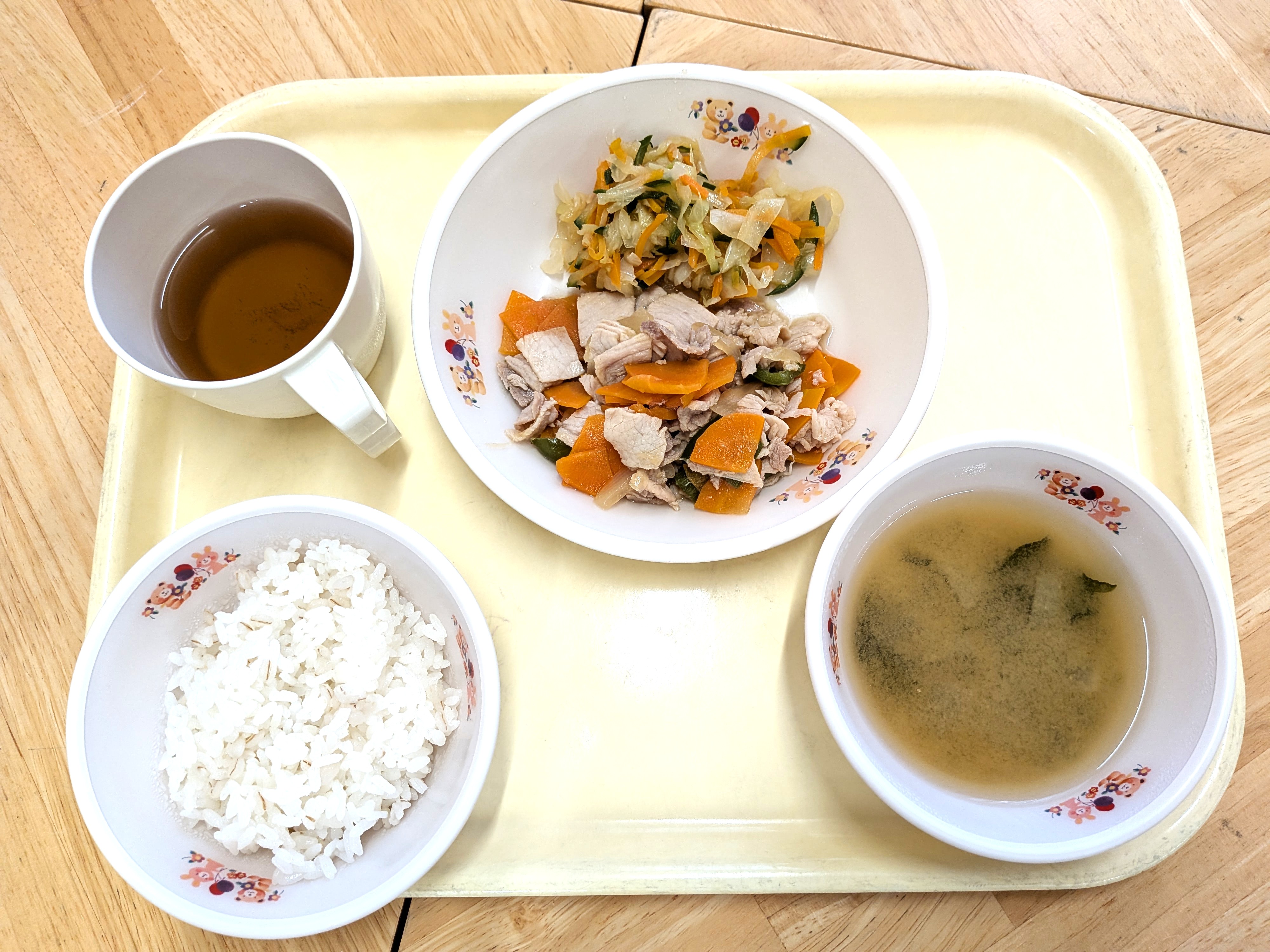 麦ご飯・豚肉の生姜焼き・キャベツサラダ・わかめの味噌汁