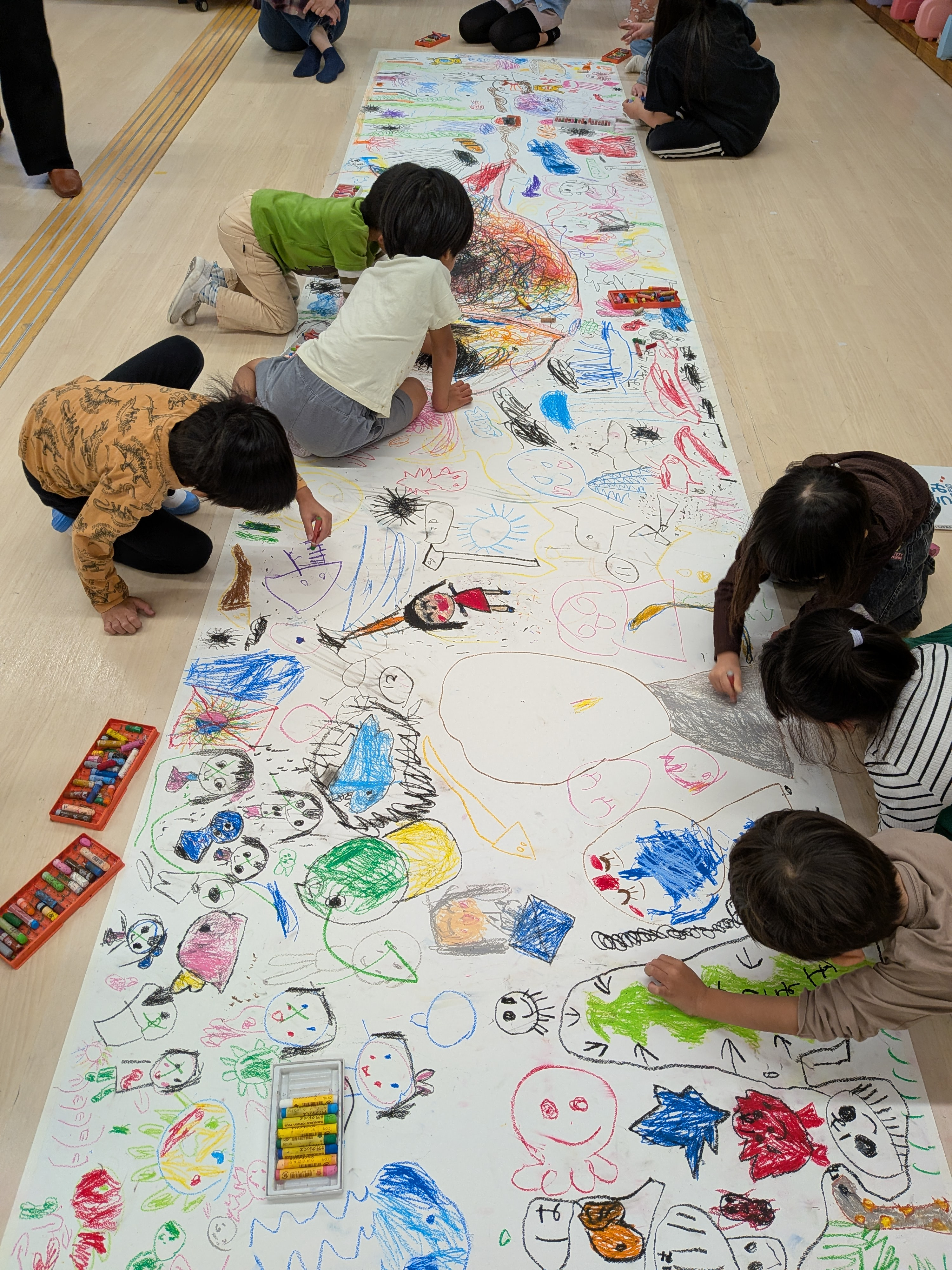 普通の模造紙には絵を描いたことがあるお友だちも、5mの大きな紙にはびっくり!