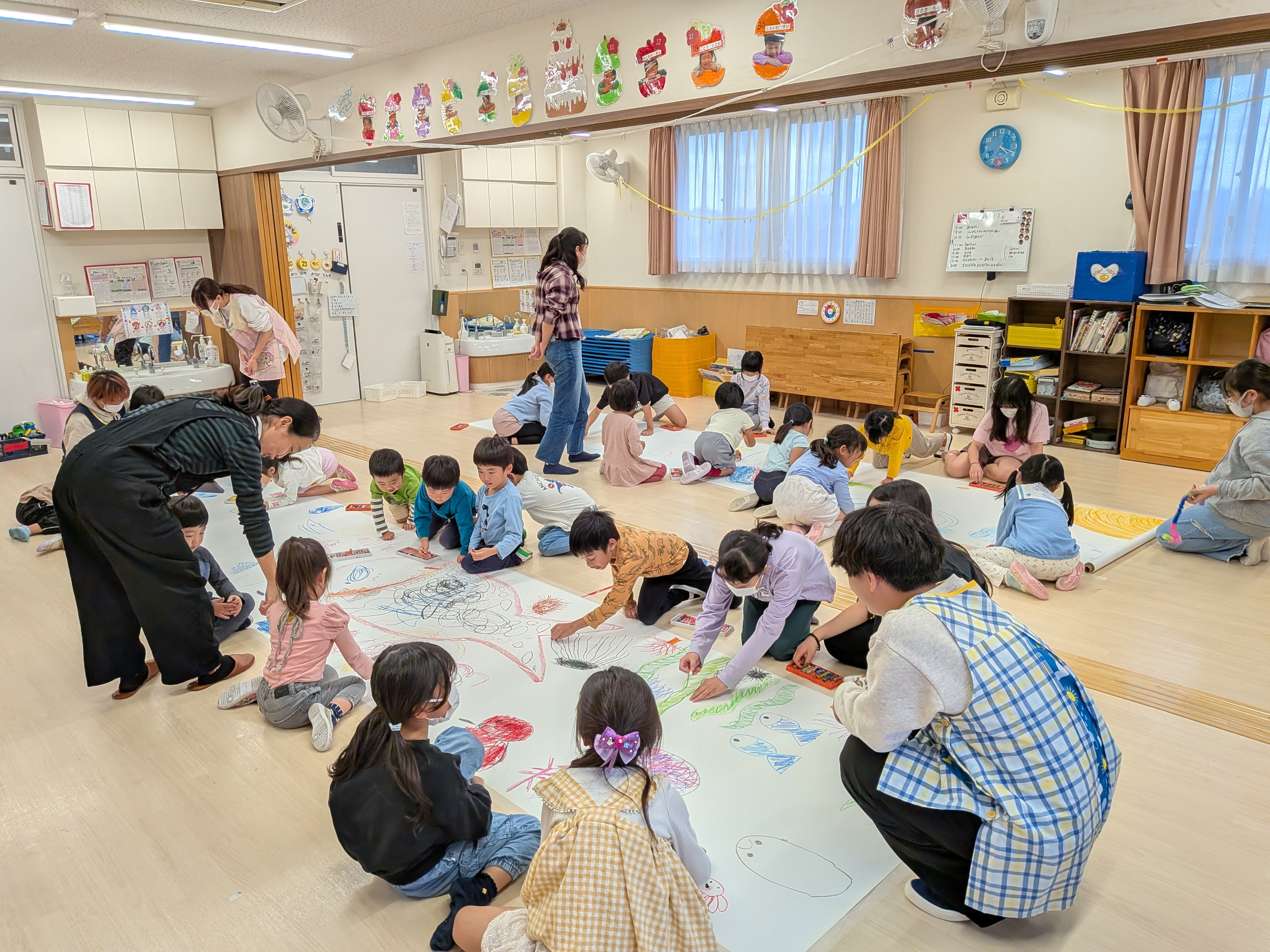 11月に、きく組5歳児さん・さくら組4歳児さんが、学童保育「マオポポkids」さんの